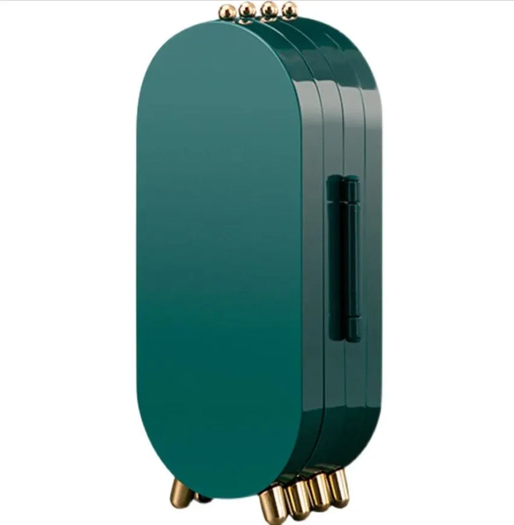 - Are you still struggling with gifts? The peacock green are paired with a gold base and top. This is a perfect travel jewelry organizer for yourself and friends.