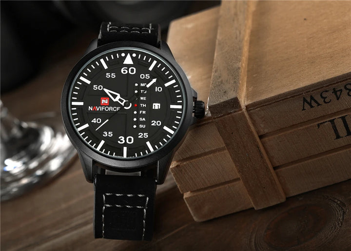 NAVIFORCE Waterproof Military Sport Quartz Men's Watches With Leather Strap White